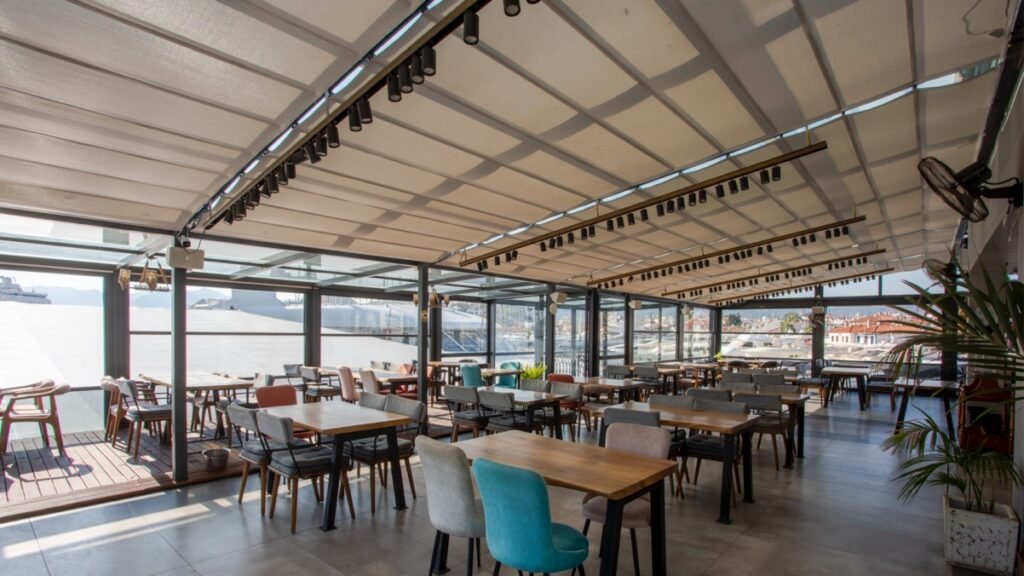 1) Sistem,bioclimatik alüminyum tavan ve cam tavan sistemlerine uygulanabilmektedir.. 4 mevsim şartlarına uygun olarak tasarlanmıştır.